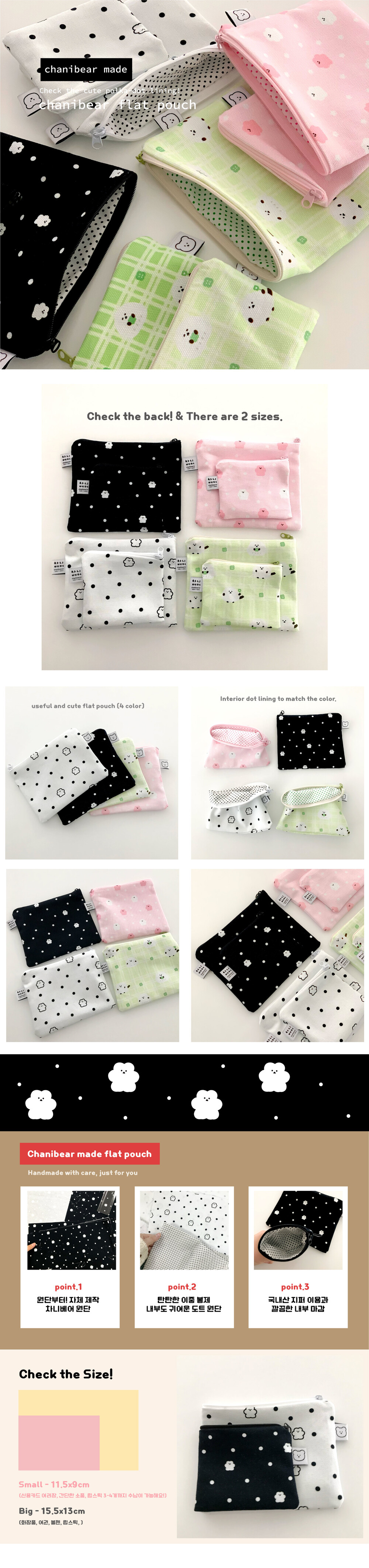 chanibear made flat pouch_ black dot